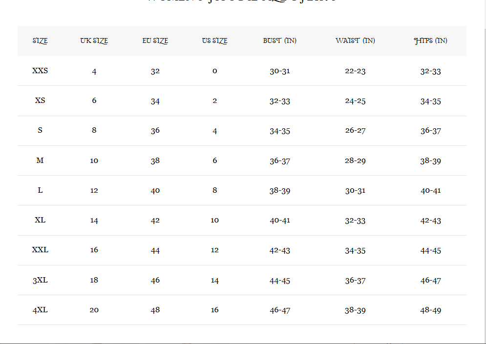 Hoodie Size Chart
