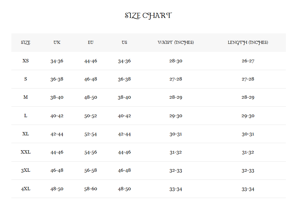 Size Chart For men